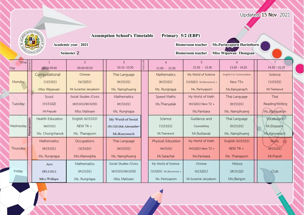 ให้นักเรียน คลิ๊กเลือก วิชาเรียนตามตารางเรียน